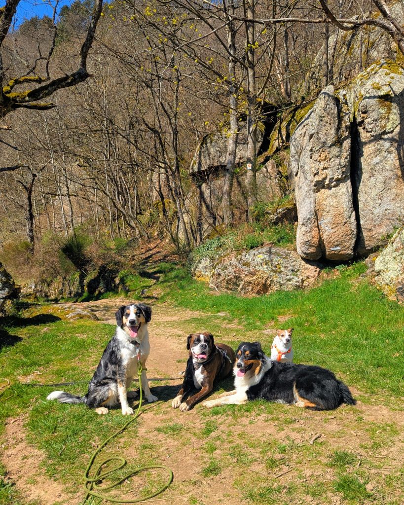 Ces sorties en groupe permettent à votre chien de se dépenser, de progresser en socialisation et d’apprendre à mieux gérer ses comportements au quotidien. Ensemble, nous trouverons des solutions adaptées pour atteindre vos objectifs, renforcer la complicité avec votre chien et rendre votre quotidien plus facile.